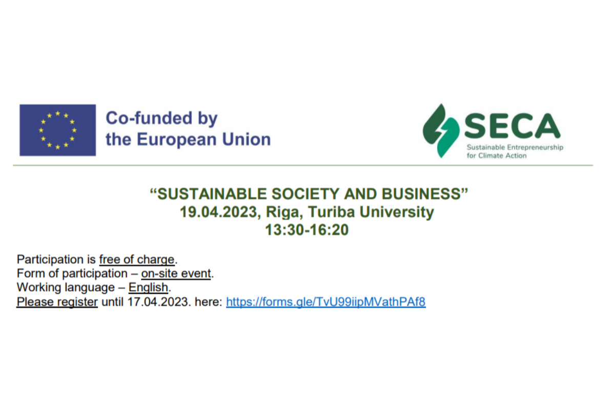 In frame of Turiba University XXIV International Scientific Conference "Change - the basis of a sustainable society" we are organizing event devoted to topic of Sustainable business.