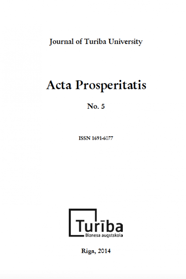 ACTA PROSPERITATIS (ISSN 1691-6077) is a peer-reviewed, multidisciplinary journal that publishes high quality original research across the entire spectrum of the social sciences, it is indexed in EBSCO, ERIH PLUS databases. ACTA PROSPERITATIS will publish: