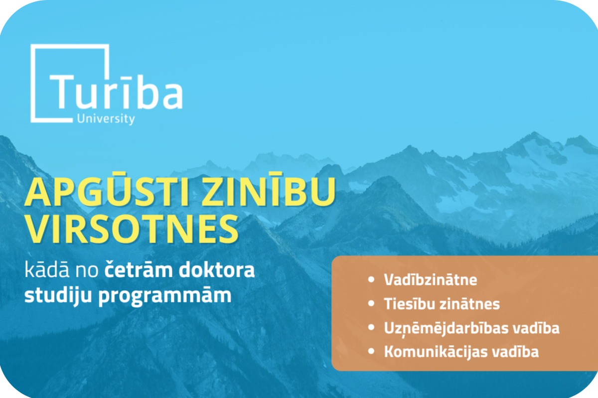 Studijas kādā no Biznesa augstskolas Turība doktora studiju programmām ir redzesloka paplašināšana un iespēja attīstīties. Tās patiesi ir studijas citā līmenī, kad pasniedzēji vairs nemāca, bet dalās ar savām zināšanām un pieredzi. Doktorantūra būtiski maina uzskatus un grauj stereotipus par pētāmo jautājumu un dzīvi kopumā. Doktorantūras studijas nav stāsts tikai par jaunām zināšanām un prasmēm, tas ir stāsts par dalīšanos ar zināšanām, to pārnesi citiem studējošajiem dažādos līmeņos un to izmantošanu, lai risinātu būtiskas un aktuālas tautsaimniecības vai akadēmiskās problēmas Latvijā un pasaulē.