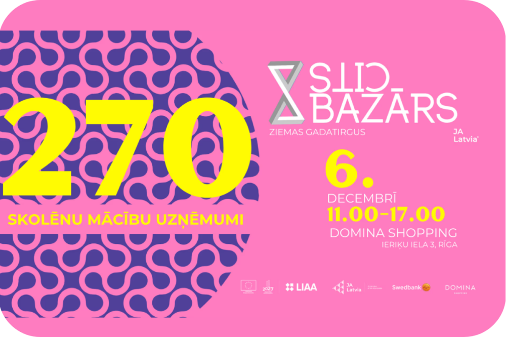 Sestdien, 2025. gada 6. decembrī, tirdzniecības centrā Domina Shopping norisināsies Junior Achievement Latvia rīkotais vietējā mēroga skolēnu mācību uzņēmumu pasākums “CITS BAZĀRS ziemas gadatirgus 2025”, kurā piedalīsies 270 skolēnu mācību uzņēmumi (SMU) no visas Latvijas. Pasākuma laikā jaunie uzņēmēji prezentēs pašu radītus produktus un pakalpojumus, demonstrējot radošumu, inovācijas un praktiskas uzņēmējdarbības prasmes.