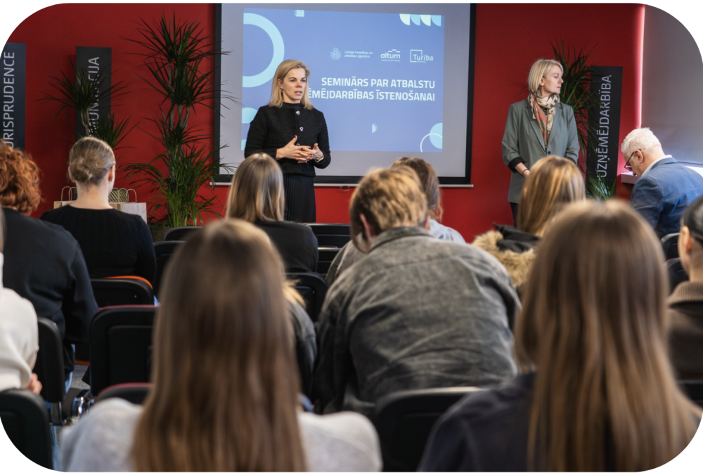 Semināru organizēja Biznesa augstskolas Turība Biznesa inkubators sadarbībā ar Latvijas Investīciju un attīstības aģentūru un attīstības finanšu institūciju ALTUM.