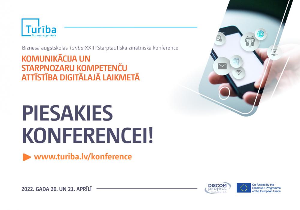 Biznesa augstskolā Turība 20. un 21. aprīlī norisināsies Starptautiskā zinātniskā konference “Komunikācija un starpnozaru kompetenču attīstība digitālajā laikmetā”. Aicinām visus interesentus reģistrēties konferencei līdz 14. aprīlim un uzzināt aktualitātes komunikācijas nozarē.