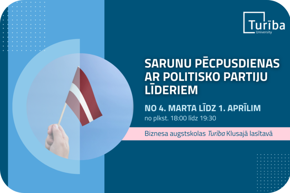 Lai veicinātu studentu izpratni par demokrātijas procesiem, tautsaimniecības attīstību, sabiedrības līdzdalības nozīmi Latvijas izaugsmē un pārrunātu šobrīd aktuālos jautājumus, Biznesa augstskolā Turība no 4. marta līdz 1. aprīlim notiks sarunu cikls ar politisko partiju līderiem.