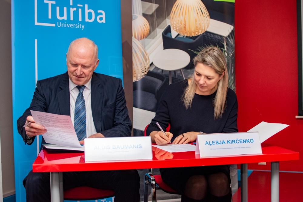 Nodomu protokolu svinīgi parakstīja Biznesa augstskolas Turība rektors, valdes priekšsēdētājs Aldis Baumanis un SEB Global Services biznesa pakalpojuma centra Rīgā vadītājas vietniece Aļesja Kirčenko.