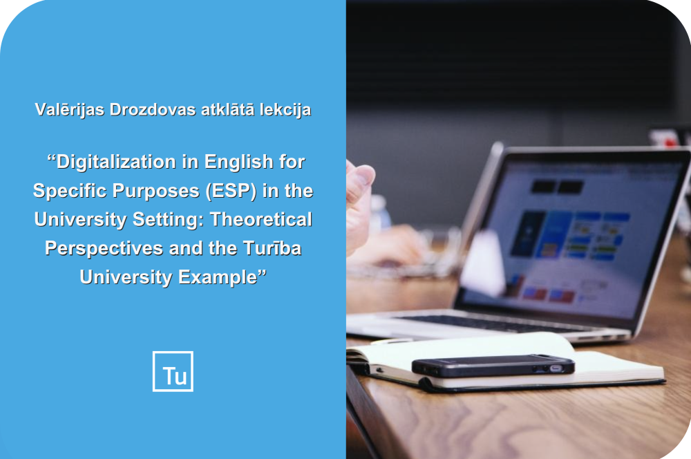 2026. gada 16. janvārī pl.11:00-12:00 aicinām uz asociētā profesora amata pretendentes, PhD Valērijas Drozdovas atklāto lekciju “Digitalization in English for Specific Purposes (ESP) in the University Setting: Theoretical Perspectives and the Turība University Example”.
