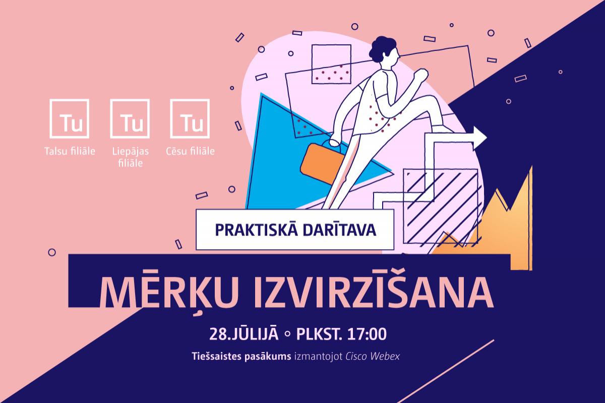 Ikvienam no mums pienāk brīži, kad mēdzam apjukt un nesaprotam kā rīkoties tālāk. Šādās situācijās spēja izvirzīt mērķus jebkurā dzīves jomā ir ļoti noderīgas! Tieši tāpēc, Biznesa augstskola Turība aicina ikvienu interesentu apmeklēt tiešsaistes praktisko darītavu “Mērķu izvirzīšana”, kura norisināsies Cisco Webex platformā 28. Jūlijā plkst. 17:00.
